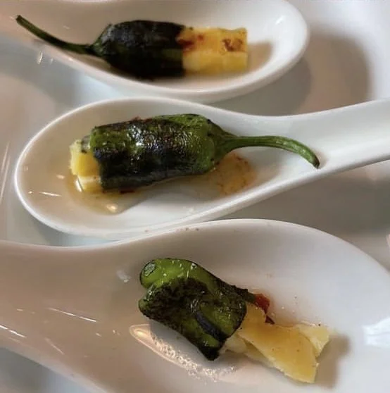 Shishito Peppers Stuffed with Blue Cheese Dressed with Spicy Honey