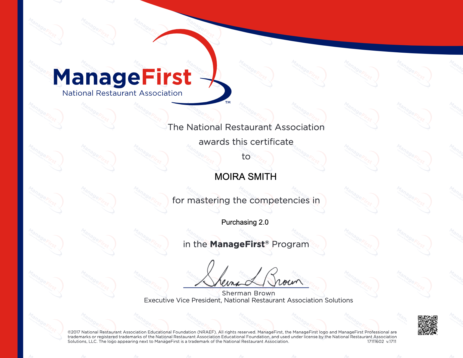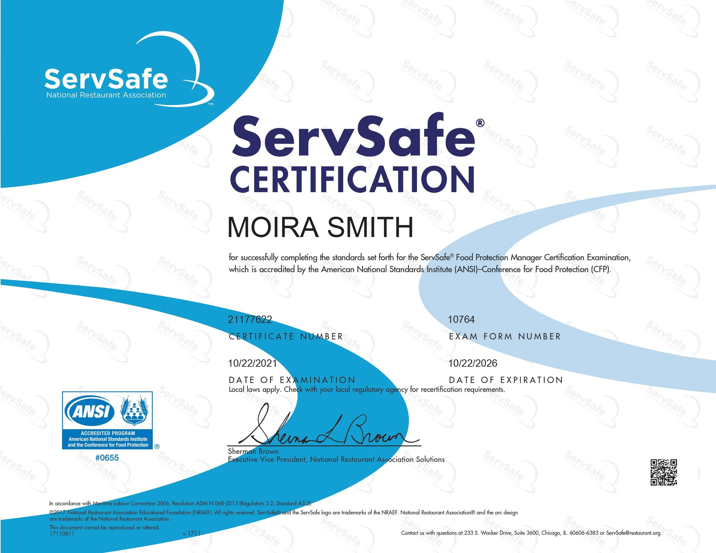 ServSafe: Food Protection Manager Certification.